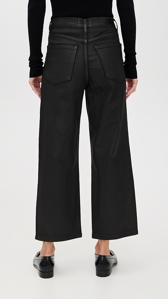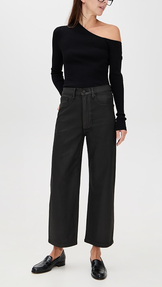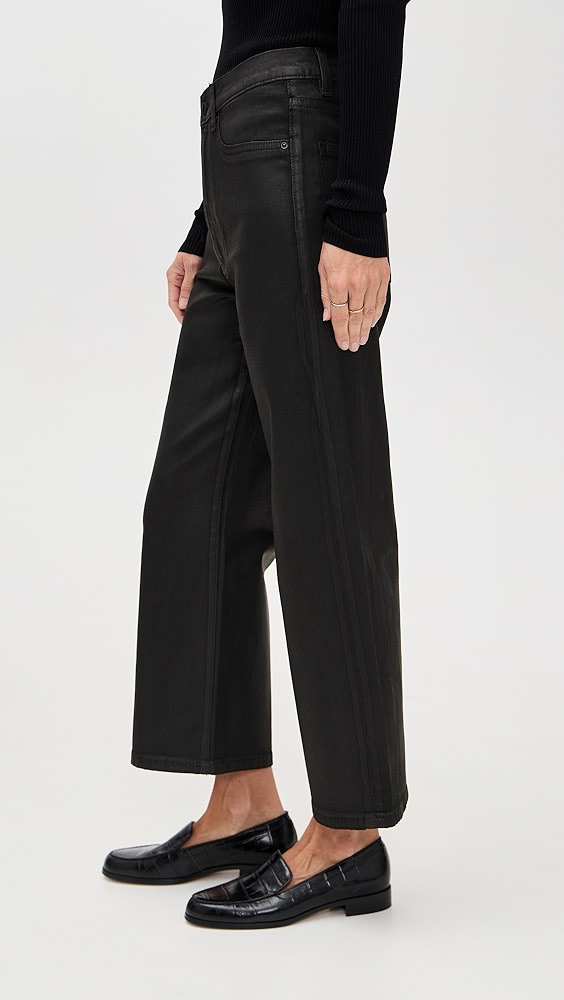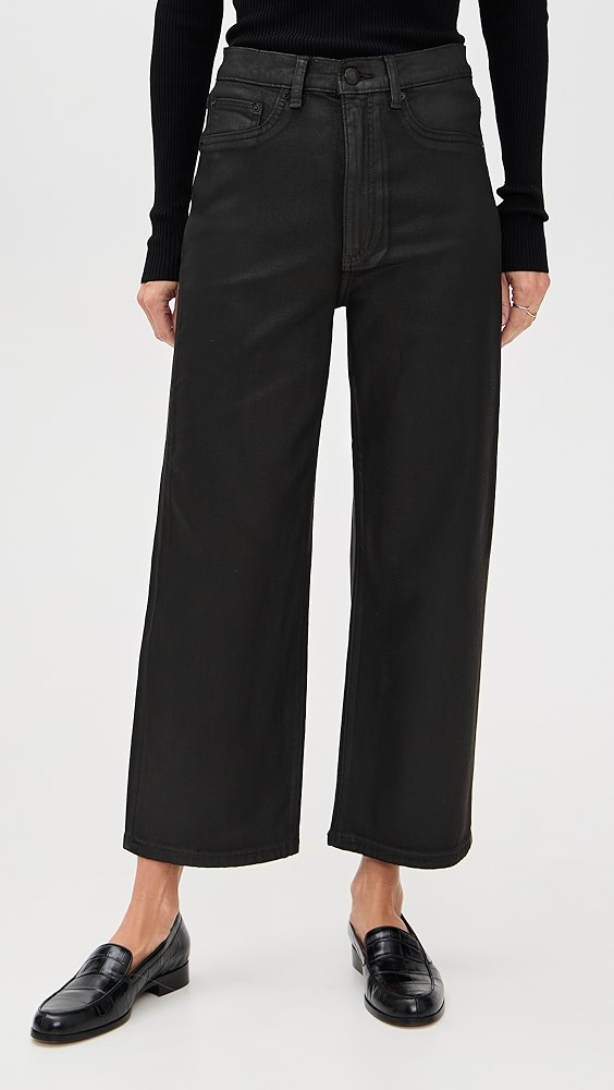 - Fabric: Mid-weight coated denim with stretch